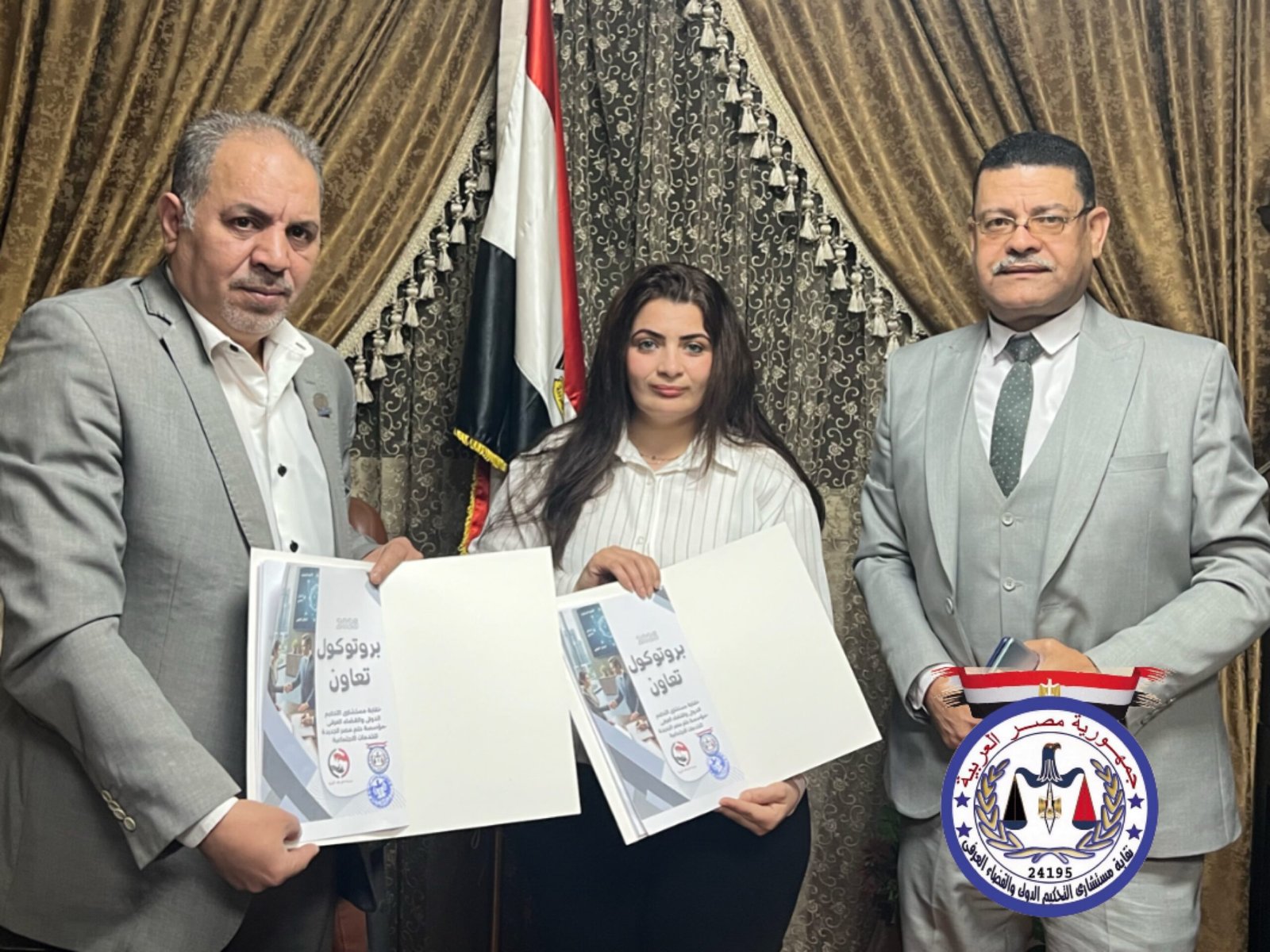 وقع البروتوكول السيد المستشار/ سيد حسن قاسم رئيس نقابة مستشارى التحكيم الدولى والقضاء العرفى والدكتورة / راندا عماد رجائي رئيس مجلس إدارة مؤسسة حلم مصر الجديدة بحضور قيادات النقابة والمؤسسة.